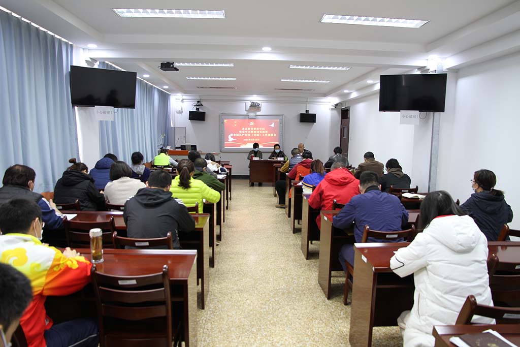 王彦席书记宣读了《中共8868体育职业学院委员会关于开展党史学习教育的实施方案》,对开展好党史学习教育作出工作安排。一是坚持个人自学,党员、干部要以自学为主,深入学习习近平总书记关于党史工作的重要论述,及时跟进学习习近平总书记最新重要讲话文章。二是集中学习研讨,院党委要集中安排2天时间,采取理论学习中心组(扩大)学习形式封闭学习,院党委班子成员、各支部书记要按照指定学习内容交流研讨。各党支部要采取“三会一课”和主题党日等形式,结合实际开展主题突出、特色鲜明、形式多样的学习活动。三是讲好专题党课。院领导班子成员带头讲,各支部书记主动讲。四是开展宣传阐释,积极参与中央、市委组织的建党100周年理论研讨会征文活动。五是开展党史宣讲,积极邀请中央宣讲团和市委各级各类宣讲团成员开展党史主题宣讲,邀请全运会冠军开展主题宣讲,讲好体育故事。六是用好红色资源,院党委、各支部适时组织党员、干部瞻仰参观革命遗址遗迹、革命博物馆、纪念场馆等,发挥先进典型的教育引导作用。七是做好线上学习,依托“宣讲家”网”“学习强国”北京平台、干部教育网等开展党史专题学习。八是开展先进表彰,“五四”前做好学院优秀共青团员、优秀团干部、先进团支部的评选表彰,“七一”前做好学院优秀共产党员、优秀党务工作者、先进党支部的评选表彰,做好局系统推优评先工作,发挥典型示范作用。九是开展“学党史、践行动”活动,结合职业教育改革和特色高校项目建设,充分依托思政课和课程思政等载体,突出立德树人根本任务,同时高度重视学生对“四史”的学习,让广大学生进一步坚定“四个自信”,树立正确的历史观,增强爱党爱国信念。十是开展“我为群众办实事”实践活动,聚焦“七有”要求和“五性”需求,与深入推进特色高校项目建设结合起来,与深入推进职业教育改革工作结合起来,与深入推进“吹哨报到”“接诉即办”结合起来。十一是召开专题组织生活会,开展党性分析,交流学习体会。十二是开展领导干部专题培训,将党史学习教育作为2021年党员干部教育培训重点任务,组织好党支部书记专题培训和党员学习。十三是抓好团员青年宣传教育,引导广大团员青年厚植爱党、爱国、爱社会主义的情感。