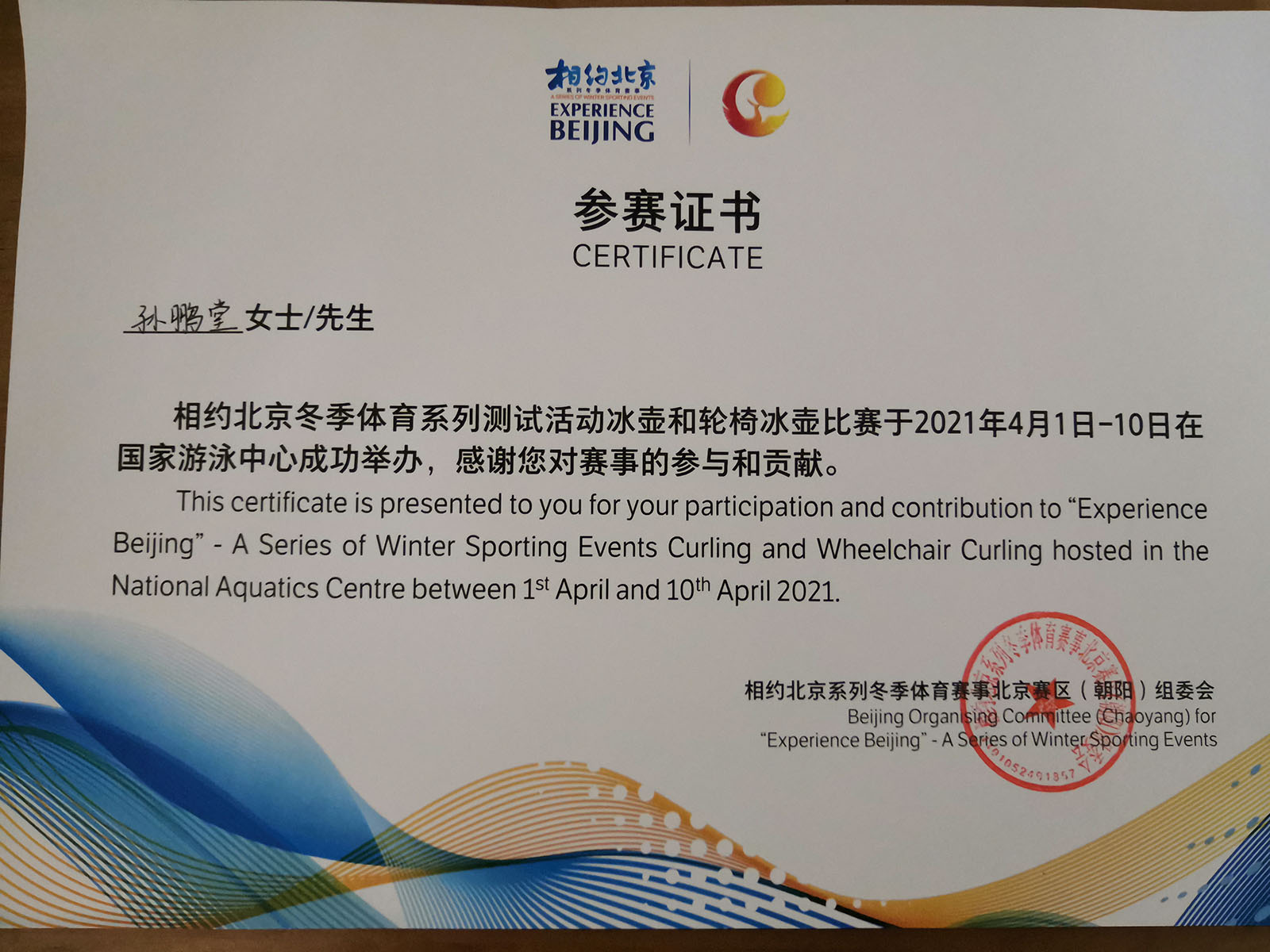 孙鹏堂担任北京冬奥会冰壶测试赛裁判员
