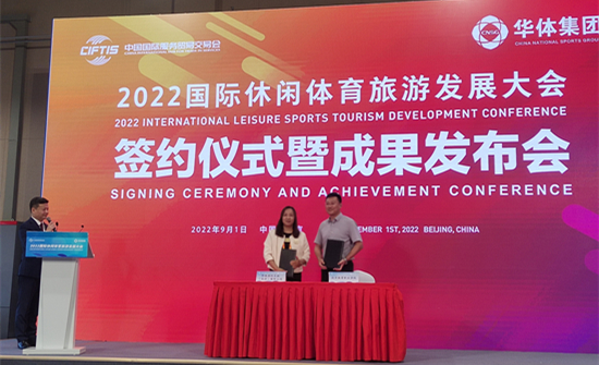 2022年9月1日,8868体育职业学院与华体国际文旅(北京)有限公司在首钢园举行的国际休闲体育旅游发展大会上签订了战略合作协议,强强联手,共同开启职业教育校企合作新篇章。