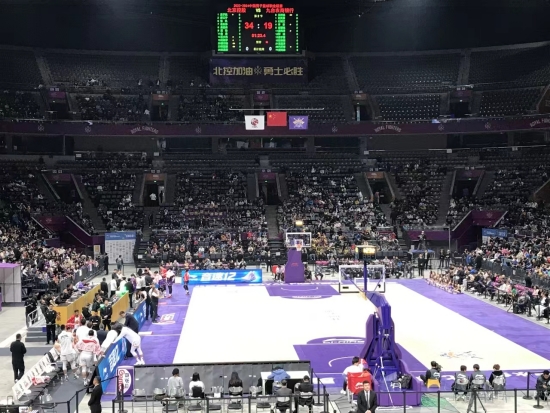 比赛开场后,双方队员迅速进入状态,场上比分交织上升,赛场气氛紧张激烈。观众席上,我院师生手持加油棒跟随场内播音员的引导不停地为场上的小伙子们加油助威。精准的三分、漂亮的盖帽、流星般的灌篮给师生们带来了一场视觉盛宴和精神享受。尤其是来自大山深处的30岁草根球员矣进宏职业生涯首秀更是燃爆了现场气氛,开创了CBA联赛历史的先河,让个人梦想照进了现实,也很好的诠释了体育精神——永不放弃,就有可能成功。