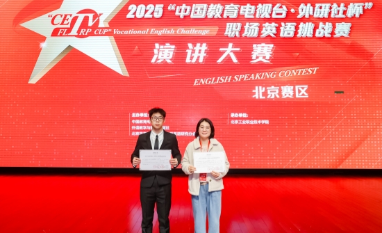 近日,2025“中国教育电视台·外研社杯”职场英语挑战赛演讲与写作大赛(北京赛区)圆满落幕。8868体育职业学院首次选派4名学生参赛,在演讲与写作两个赛项中均表现优异,共摘得二等奖2项、三等奖2项,充分展现了学院学子良好的英语语言应用能力、出色的职业素养与昂扬的精神风貌。